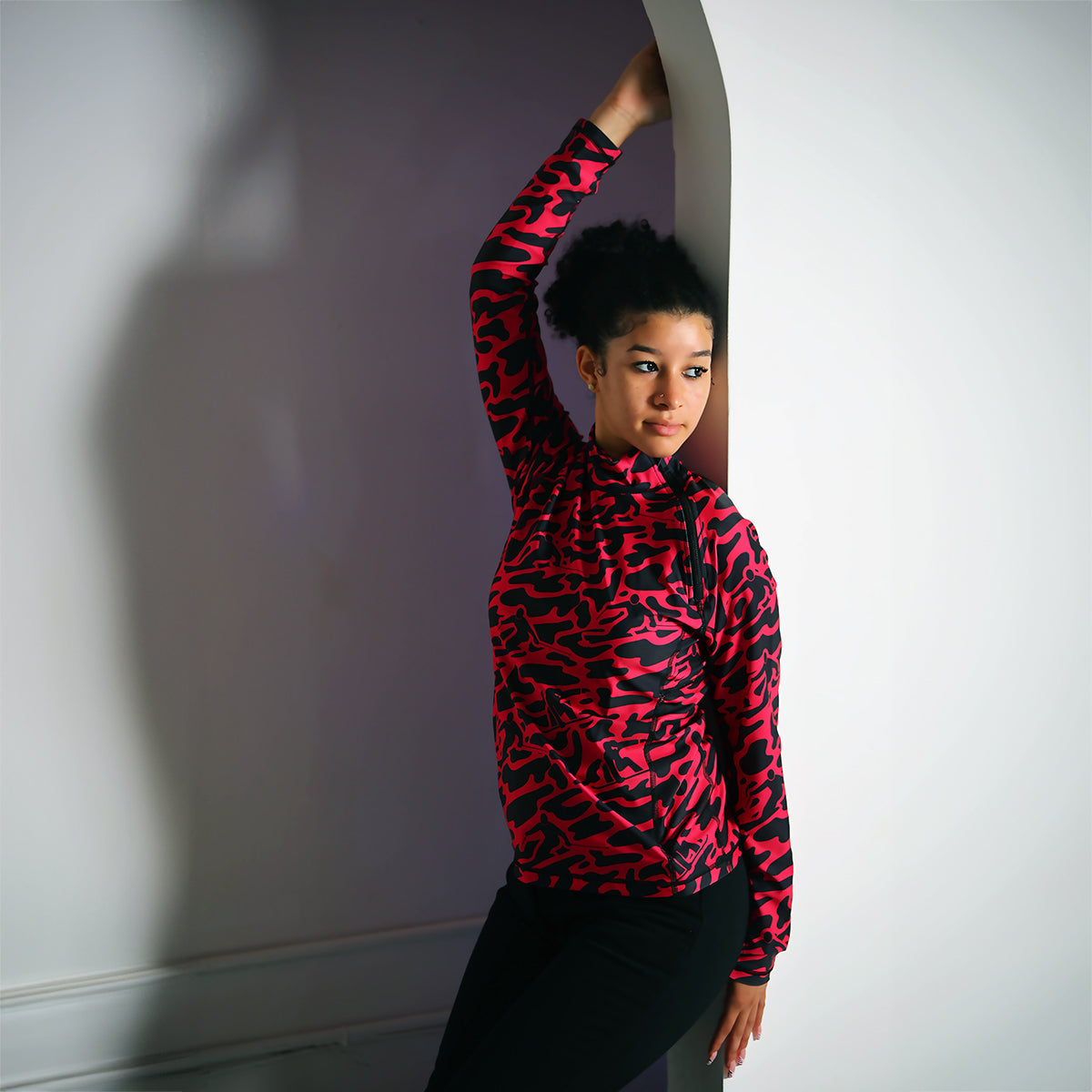 Built with premium performance fabric, Crimson BeastMode delivers breathable, moisture-wicking comfort designed to move with you on the slopes. Its fiery pink-and-black camo graphics turn every run — and every après-ski moment — into a bold statement.