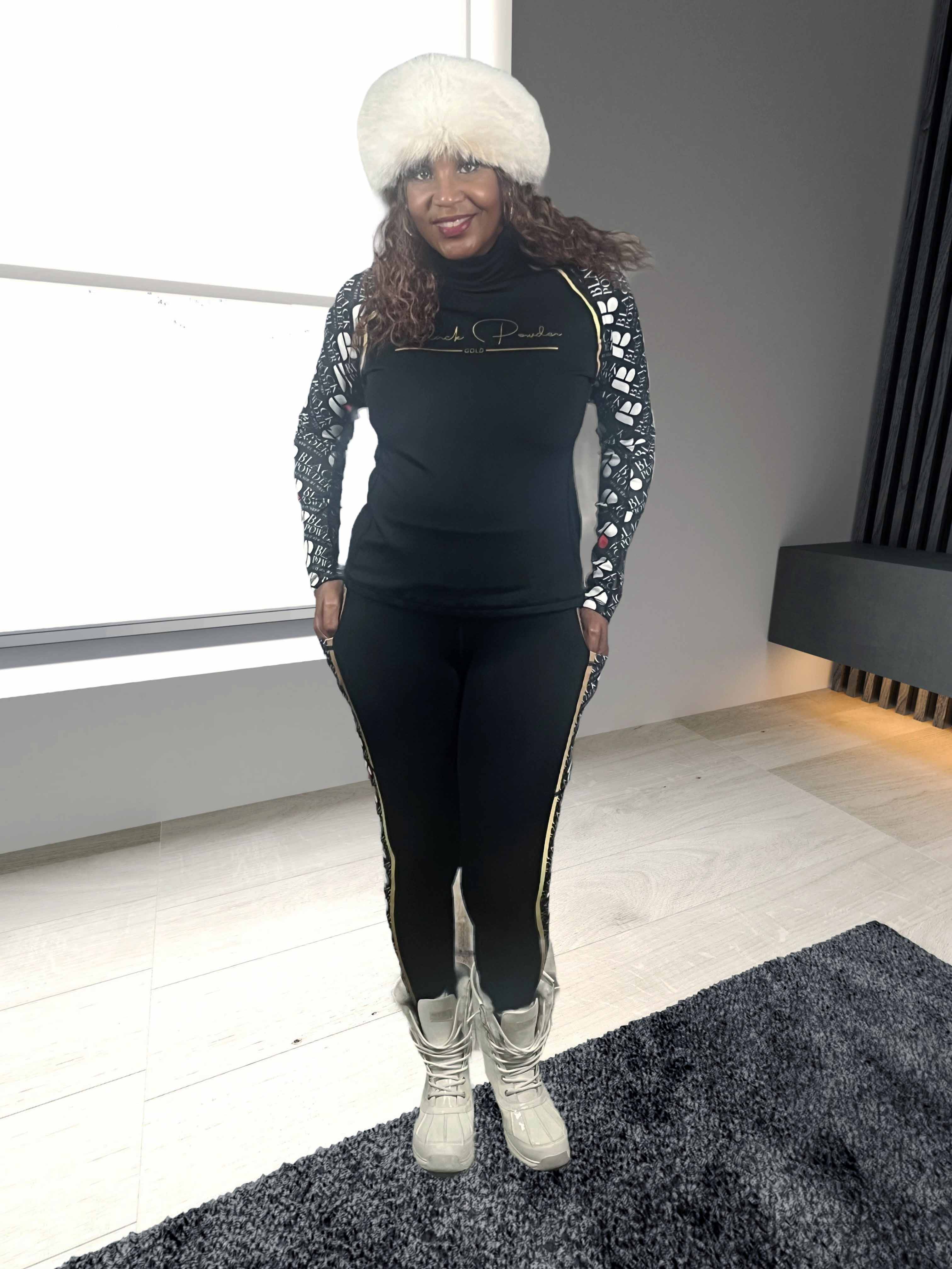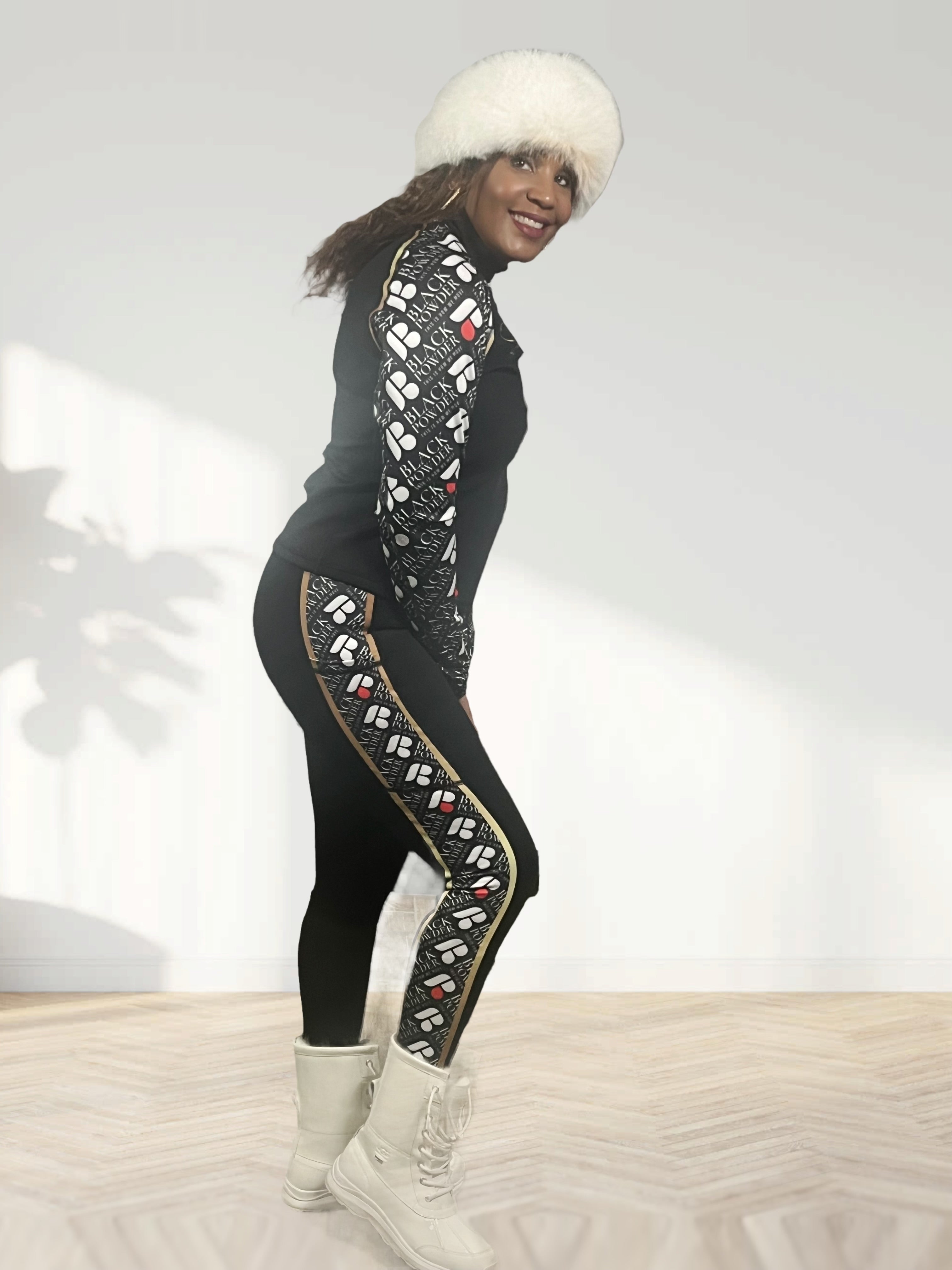 Signature is where performance meets presence. Crafted in sleek matte black with sculpted gold contour lines, this set is finished with our bold Black Powder monogram sleeve panels — a statement of culture and confidence in motion.