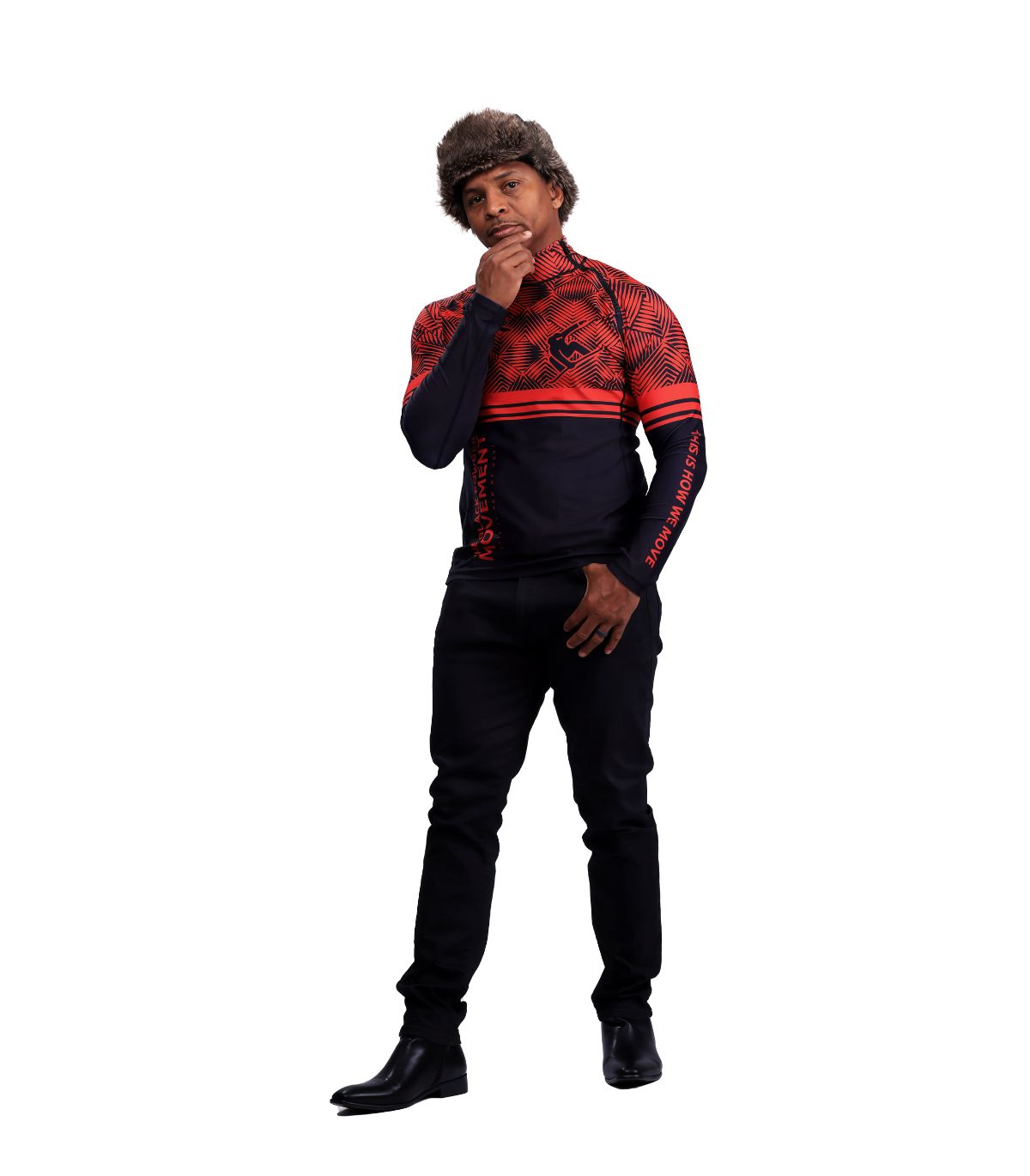 Ignite your passion for the slopes with this dynamic red and black shirt. The geometric design, accented by solid black sections, delivers a powerful visual impact while the skier and boarder icons showcase your love for winter sports. This shirt isn't just about looks – the asymmetrical zipper, thumb holes, and UV protection ensure you're ready for any mountain adventure. Stand out from the crowd and make a statement with this energetic design.