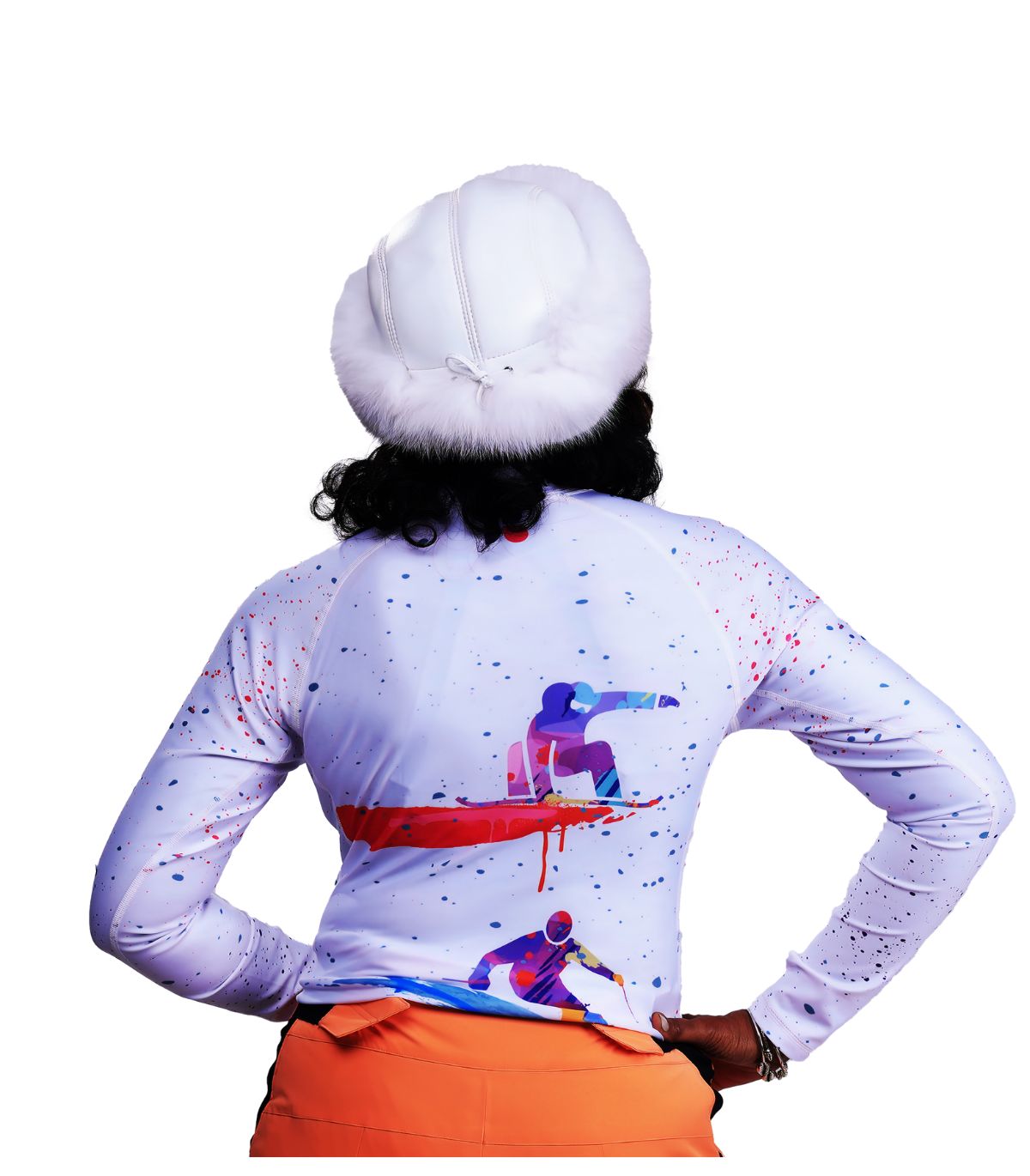 Defy gravity and transcend boundaries with the 'Space Odyssey' shirt. This celestial design features skiers and boarders gliding across vibrant color accents, creating the illusion of an exhilarating ride through the cosmos. The white background serves as a canvas for this cosmic adventure, while the iconic symbols pay homage to your passion for winter sports. As with all our shirts, the 'Space Odyssey' boasts an asymmetrical zipper, thumb holes, and UV protection, ensuring you're equipped for both earthly and extraterrestrial adventures. Let your imagination soar and make a statement that's out of this world.