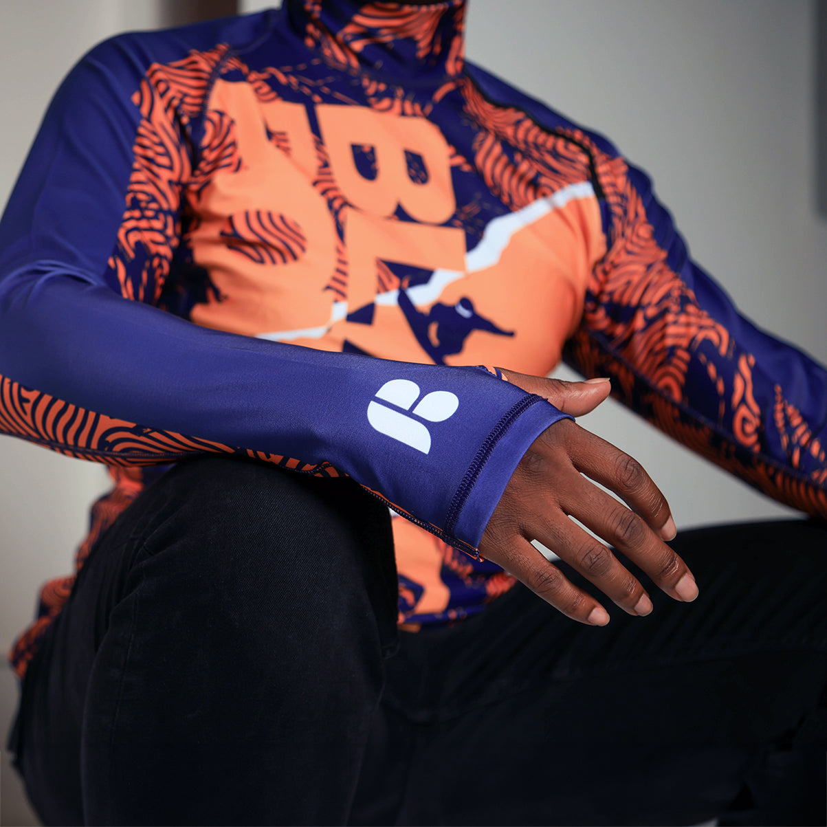 Turn heads on and off the mountain with the Cliffhanger — a vibrant orange-and-navy performance base layer that celebrates the bold spirit of Black skiers and riders. Featuring dynamic skier and snowboarder silhouettes, premium moisture-wicking fabric, and an athletic fit with extended sleeves for warmth, this piece blends comfort and style. With oversized “Black Powder” typography and energetic linework patterns that echo the flow of the slopes, the Cliffhanger transitions effortlessly from peak performance on the mountain to standout style at après-ski.