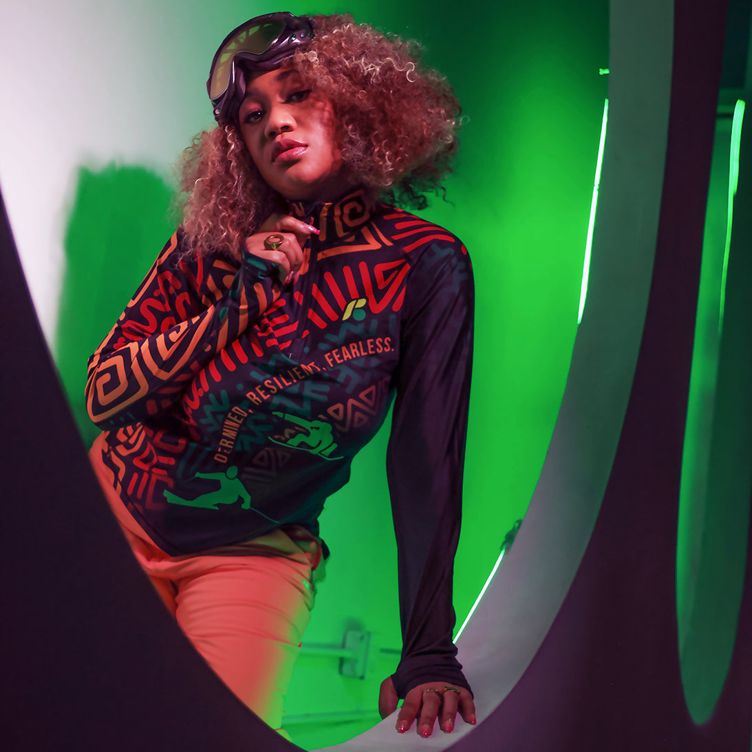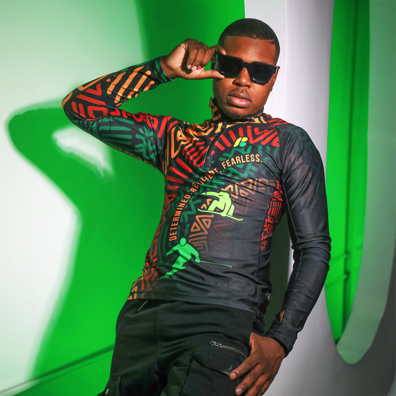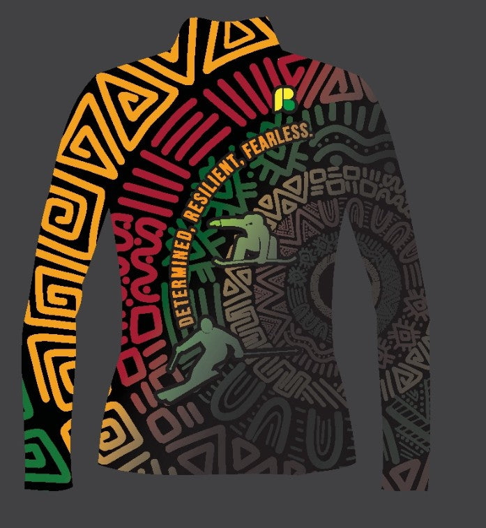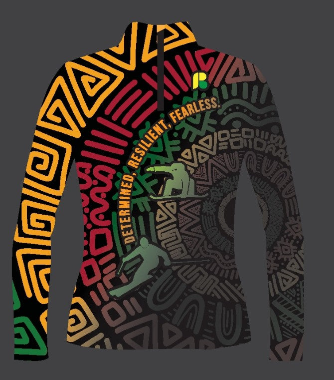 To be a warrior is to move through life with courage, discipline, and purpose. It means standing tall in the face of obstacles and carrying with you the resilience of those who came before. The Warrior shirt embodies that spirit with bold Afro-centric patterns that speak to heritage and identity, and the powerful words across the chest — Determined. Resilient. Fearless. — as a constant reminder of the strength within. Built with performance fabric to move with you on the slopes and in life, Warrior is more than a base layer. It’s armor, it’s pride, and it’s a declaration that we are unbreakable, unstoppable, and brilliantly bold.